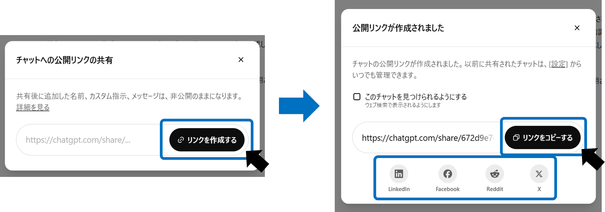 By using ChatGPT's shared link function, you can show the contents of your conversation to others by simply sending the URL.. This is especially useful when you want to teach your colleagues how to use it conveniently, when you want to share your proposals to customers, or when you want to introduce usage examples within your team. Why not start by sharing information with your closest colleagues? However, it is important to keep in mind some basic precautions, such as avoiding sharing highly confidential content such as personal information.