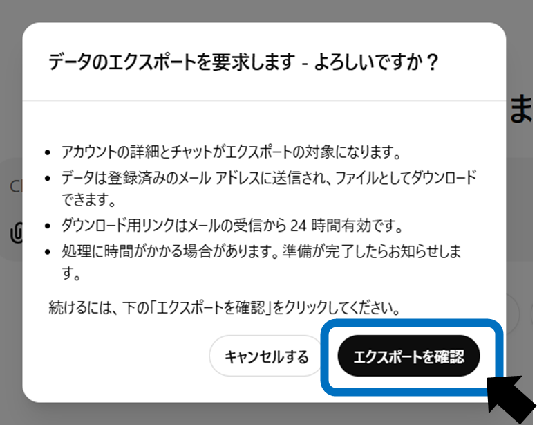 When the confirmation screen appears, click Confirm Export. An email will be sent to your registered email address.